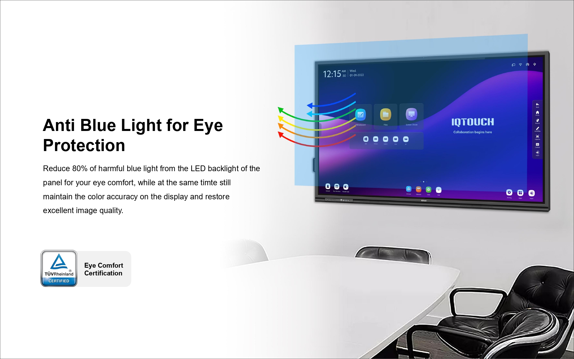 The IQTouch HA1100 Interactive Flat Panel (IFP) is a cutting-edge solution designed to enhance collaboration and engagement across corporate, educational, and government sectors in Malaysia. With its advanced optical bonding technology, this IFP offers improved touch accuracy, reduced glare, and stunning 4K UHD visuals. The optical bonding process eliminates the air gap between the glass and display, providing crystal-clear images and superior viewing in bright environments.