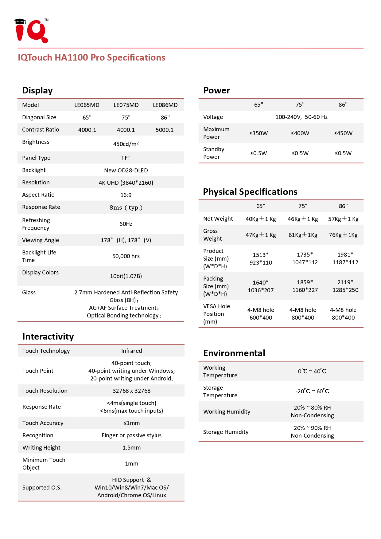 This interactive flat panel also includes multi-touch capability, seamless screen sharing, and a built-in Android OS for a user-friendly experience. Whether for interactive lessons, boardroom meetings, or conferences, the IQTouch HA1100 delivers a versatile and powerful solution for modern workspaces in Malaysia.